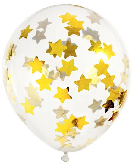 PartyDeco S. r. o Átlátszó latex lufi, arany csillagokkal, 6 db/cs