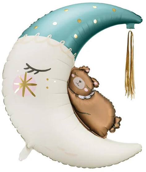 PartyDeco S. r. o Fólia lufi, Teddy Maci a holdon, kék, 80x98 cm
