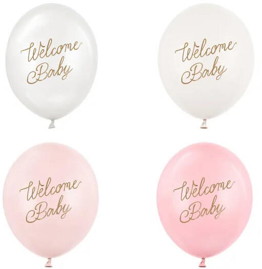 PartyDeco S. r. o Welcome Baby, pink mix, latex lufi, 30 cm, 5 db/cs