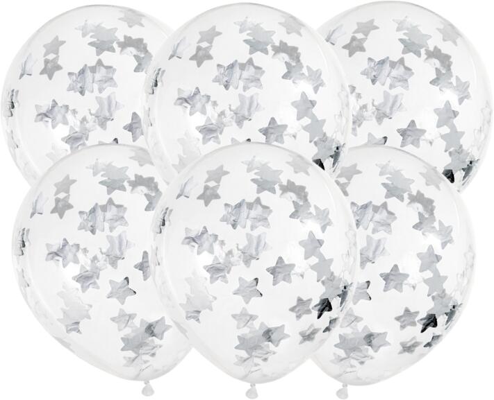 PartyDeco Áttetsző ezüst csillagos latex léggömbök 6 db