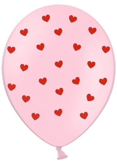 Rózsaszín latex  lufi piros szívecskékkel.  Alkalmas  valentin napi ünnepség  díszítésére. A  lufik  kiváló minőségűek és levegővel vagy héliummal felfújhatóak.