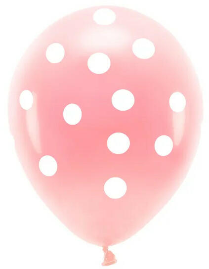 Partydeco Mintás latex lufi 11" 33cm 6 db rózsaszín fehér pöttyel (LUFI469710)