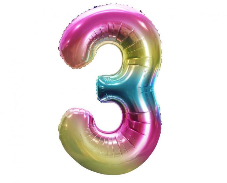Rainbow, Szivárvány 3-as szám fólia lufi 85 cm