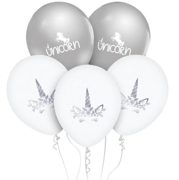 Unikornis Silver léggömb, lufi 5 db-os 12 inch (30cm) (MLG150216) - decorit